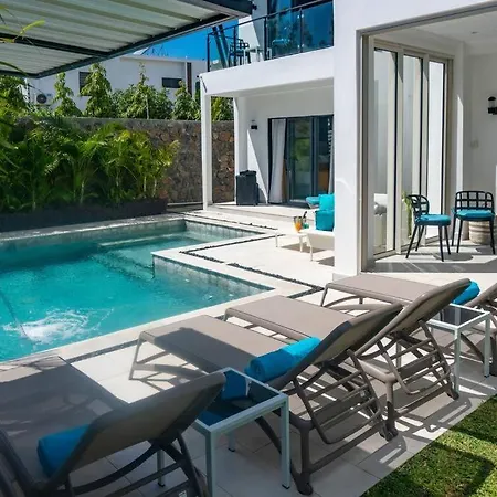 Luxury Villa In Grand Bay ligt op 900 meter afstand van By the Sea en nodigt gasten uit om te ontspannen op een terras.